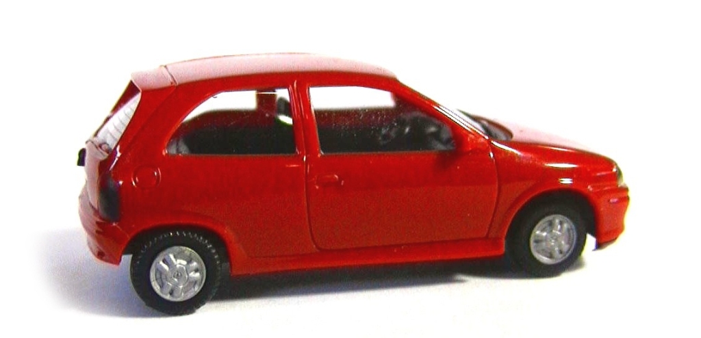 Red body and bumpers , black interior , plastic front and rear