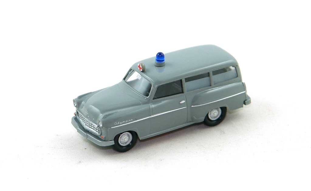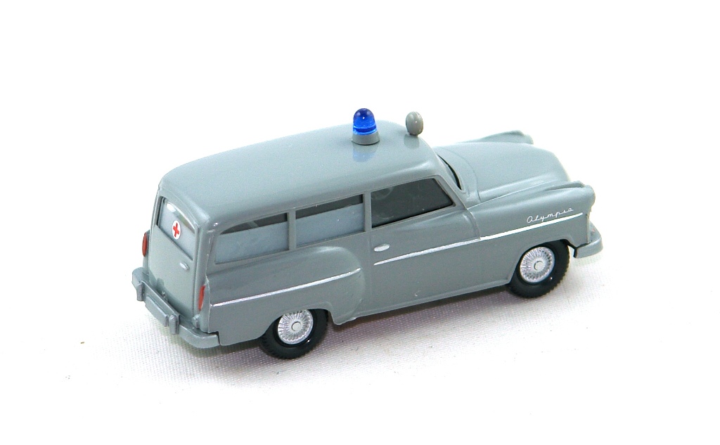 Light grey body , and rear windows , " Red Cross " sign and blue