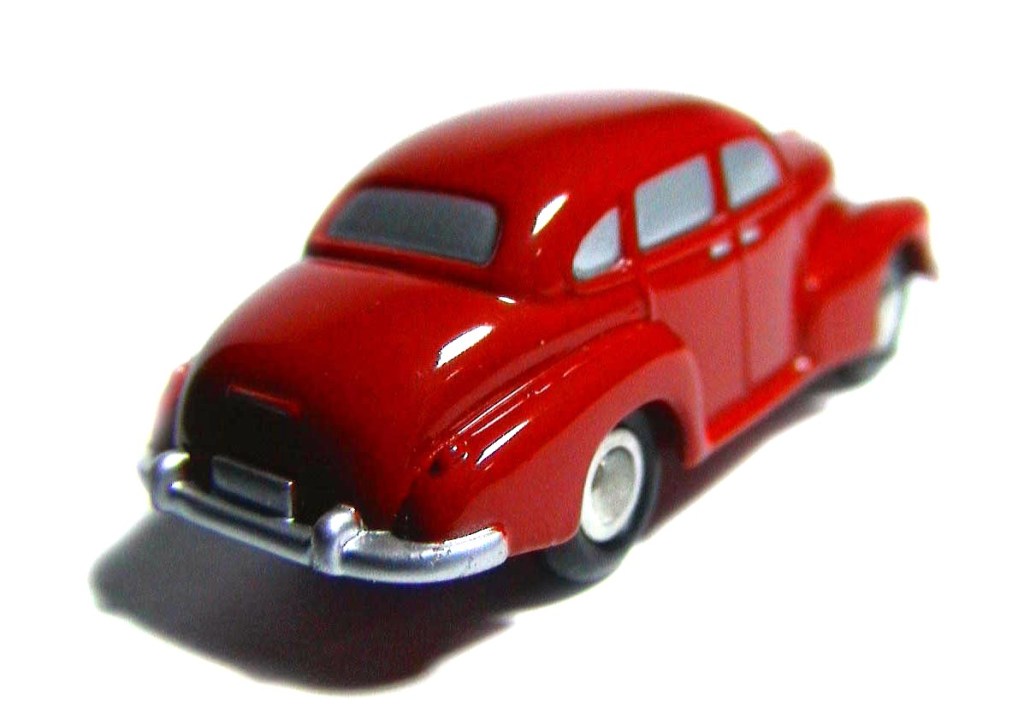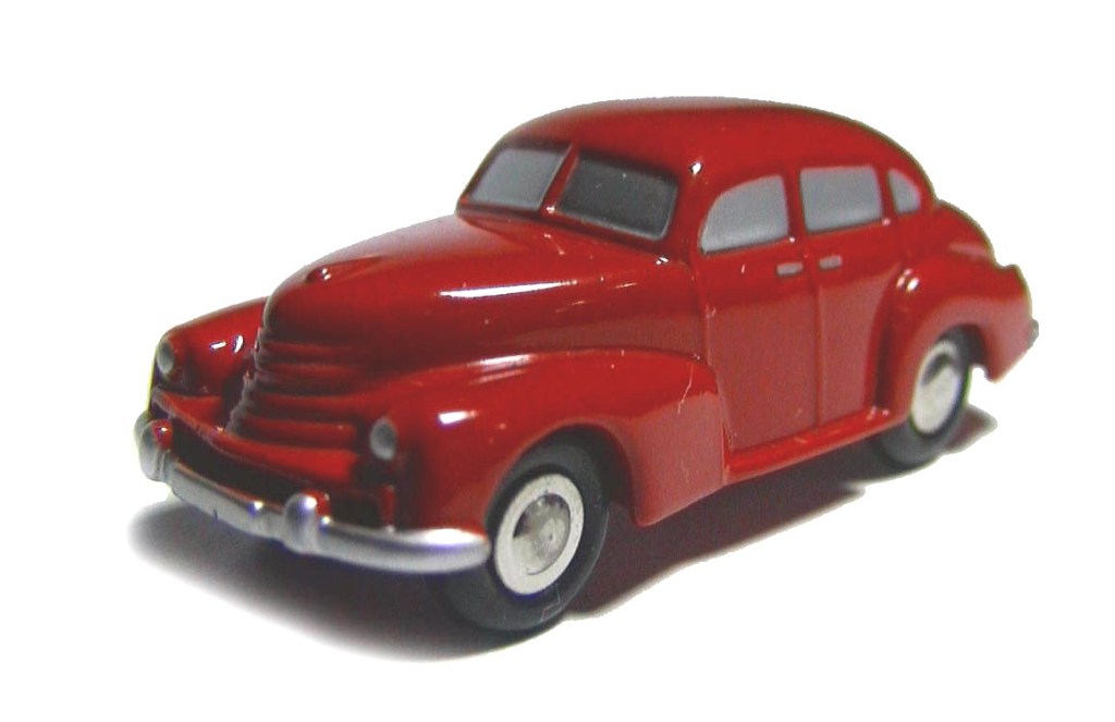 Red body , silver painted windows , grille , lights and