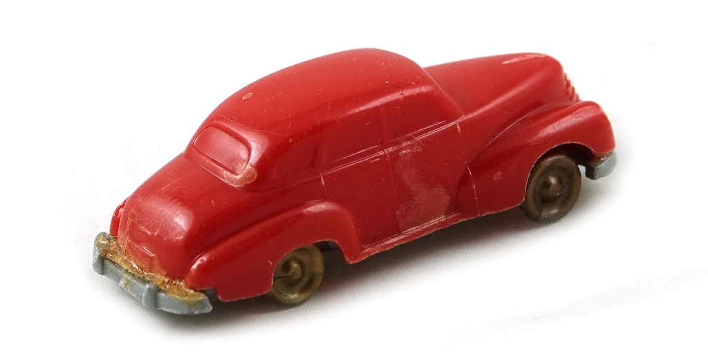 Plastic base including bumpers and simple copper colored plastic wheels