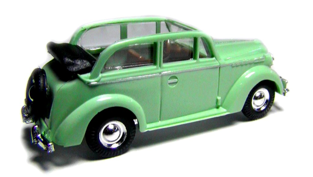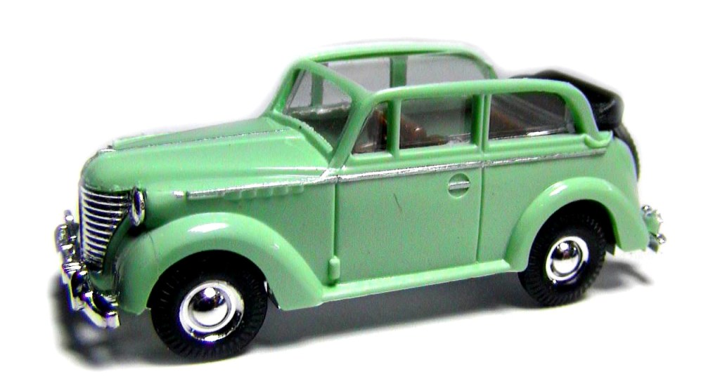 Light green body , brown interior and black folded softtop , chrome