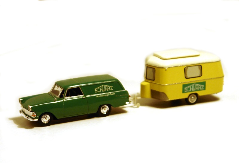 Opel Rekord P2 Van with Eriba Caravan - Schwarz - Brekina NÂș 20142