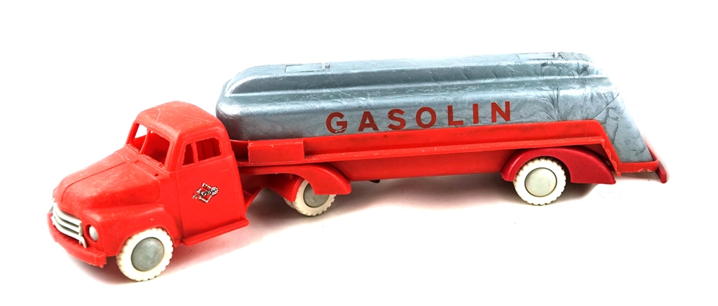 Red cabin , with white grille and headlights , cistern 2 colors