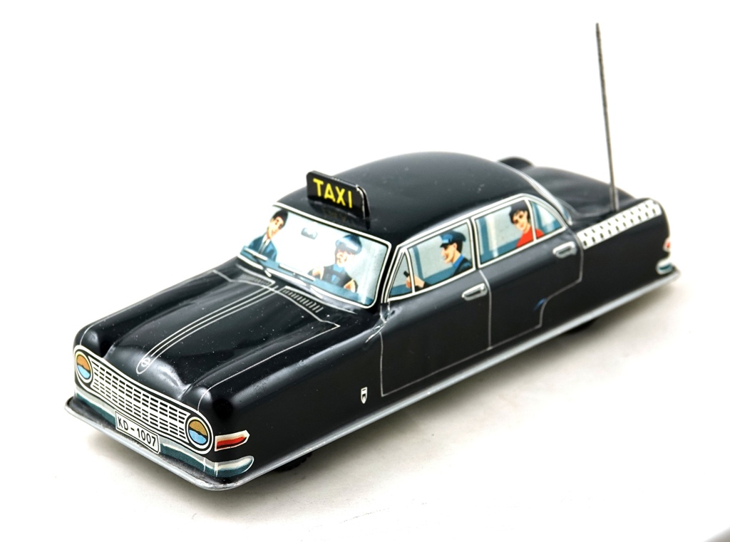 passengers , metal Taxi advertising and big antenna |