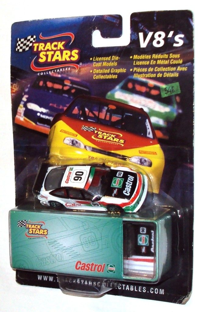 NÂș 546 of my 1/ 64 collection , is a Castrol Calibra V6 made by Track Stars in the 90's . Hard to find items , I have only this version , time to time they turn up on Ebay . I know at least a dozen or so of different liveries . Very nice competition colorful decorations , even if they doesn't represent a real race car . I think that Track Stars and Realtoy are related because both are 1994 type DTM cars . This model has a white body with black motor hood and rear spoiler and red / green stripes on the front and both sides of the car and 6 spokes WW wheels .