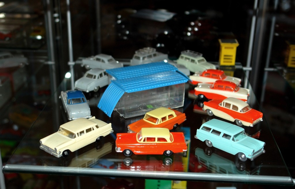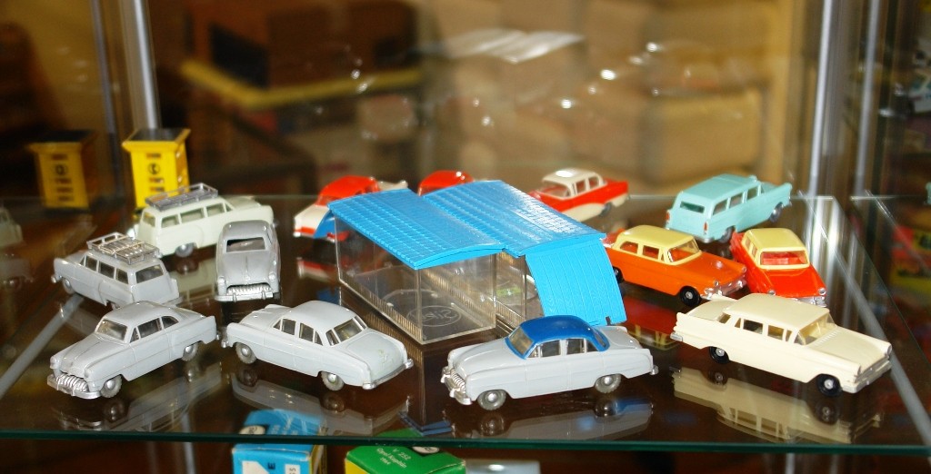 shelf a selection of models from the 50's .