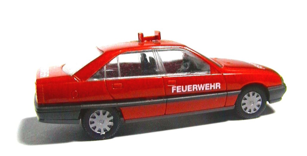 Red body , Feuerwehr on motor hood front doors and trunk , black interior , bumpers and side protections ,
