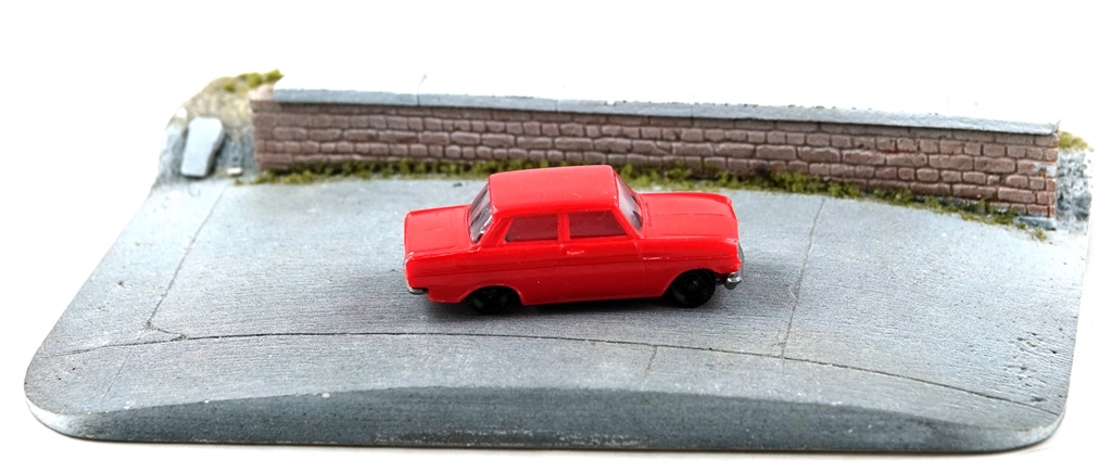 Light red body , grey base including grille and bumpers , black