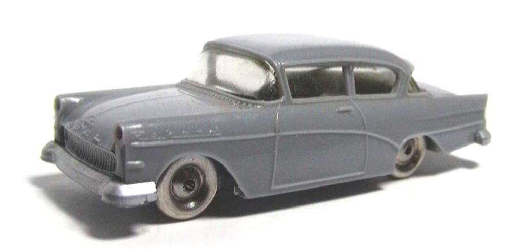 Light grey body , plastic headlights , silver grille and bumpers , metal