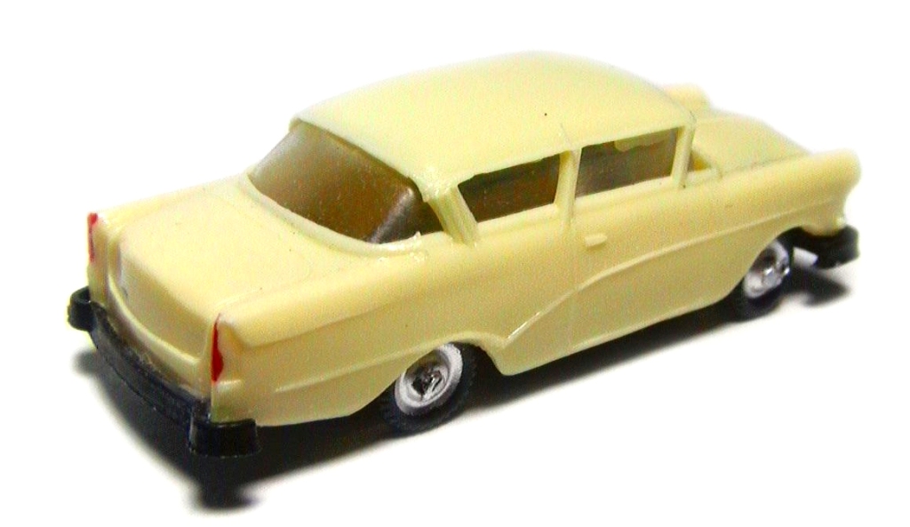Cream body , silver painted headlights and hubcaps , red rear lights ,