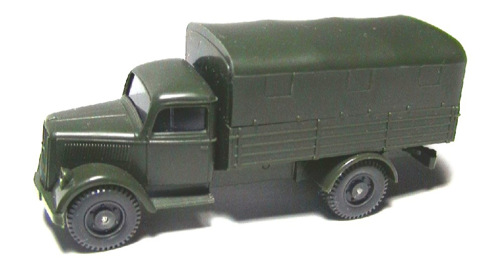Dark green body , cargo box , canvas , , chassis , fenders , bumpers and