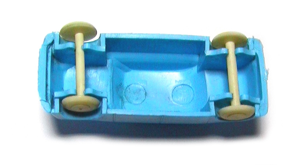 Simple plastic shell , no base and one piece plastic wheels / axles