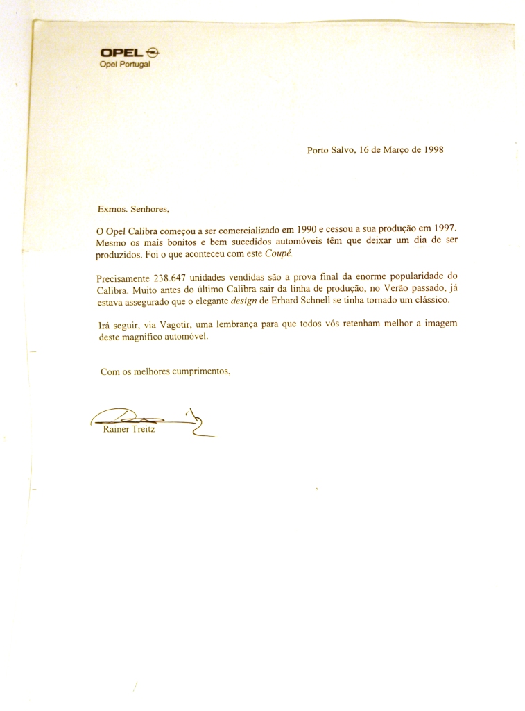 | Opel Calibra - End of production , portuguese Promotional / Comemorative gift |