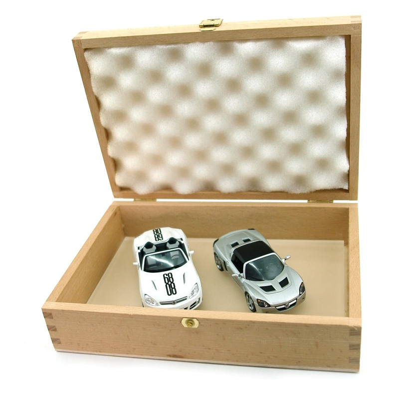 1968 - 2008 , 40 Years of Irmscher . Nice wood box with a plastic base and 2 models , one GT and one Speedster , normal Schuco models with special Irmscher decals . Nice set but very expensive .